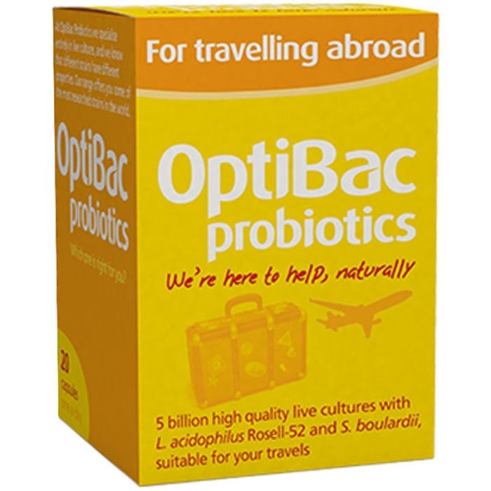 OptiBac Probiotics Travel Пробиотик при пътуване 20 капсули е хранителна добавка, която е много подходяща по време на пътувания, особенно при по-влажен и горещ климат.
