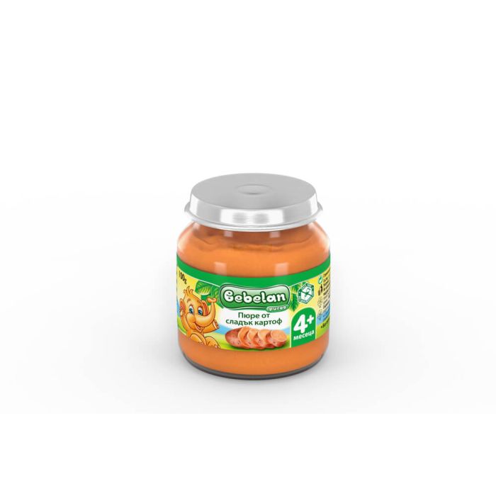 Bebelan Сладък картоф Пюре 4М+ 100 гр e стерилизиран зеленчуков хранителен продукт за бебета от 4-месечна възраст. Зеленчуковата култура сладък картоф е много богата на ценни хранителни вещества – витамини, минерали и фибри, които помагат за правилното развитие на бебето. Приятният и леко сладък вкус на зеленчука правят пюрето добро начало в откриването на нови вкусове от бебчето. Бебелан Сладък картоф Пюре 4М+ 100 гр е еднокомпонентен продукт, подходящ за включване в бебешкото меню като захранваща храна. Не съдържа глутен, добавена сол и изкуствени добавки.