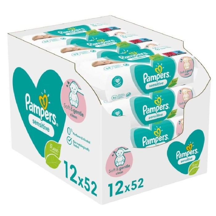 Pampers Sensitive Бебешки мокри кърпички 12 x 52 бр