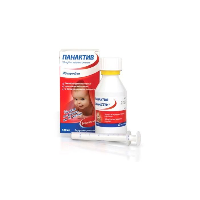 Polpharma Панактив сироп е лекарство за симптоматично лечение на повишена телесна температура и болка при кърмачета и малки деца. Активната съставка на Полфарма Панактив сироп е ибупрофен, който представлява нестероидно противовъзпалително лекарствено средство. Съдейства за преодоляването на повишена телесна температура, ставни, мускулни и костни болки, главоболие, болки в гърлото и др.