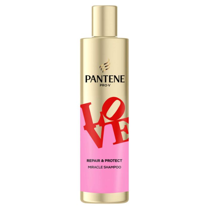 Pantene Pro-V Love Repair & Protect Shampoo е подхранващ шампоан с Pro‑V формула, създаден да възстановява увредената коса и да я предпазва от бъдещи накъсвания. Той почиства нежно, като едновременно с това укрепва косъма отвътре и възстановява естествения му блясък. Косата става по‑мека, по‑силна и по‑устойчива на ежедневни увреждания. Пантен Про-В Пиреър & Протект Лав Подхранващ шампоан за коса е подходящ: