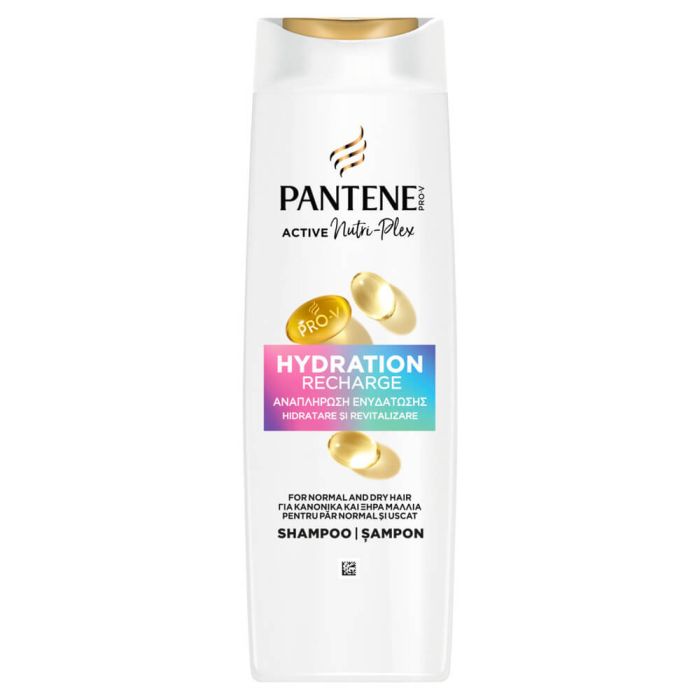 Pantene Pro-V Hydration Recharge Shampoo е интензивно хидратиращ шампоан с Pro‑V формула, създаден да възстановява влагата в сухата и дехидратирана коса. Той нежно почиства, като едновременно подхранва в дълбочина и помага за възстановяване на естествената мекота и еластичност. При редовна употреба косата става по‑гладка, по‑подхранена и по‑устойчива на увреждания, причинени от сухота. Пантен Про-В Хидрейшън Ричардж Хидратиращ шампоан за коса е подходящ: