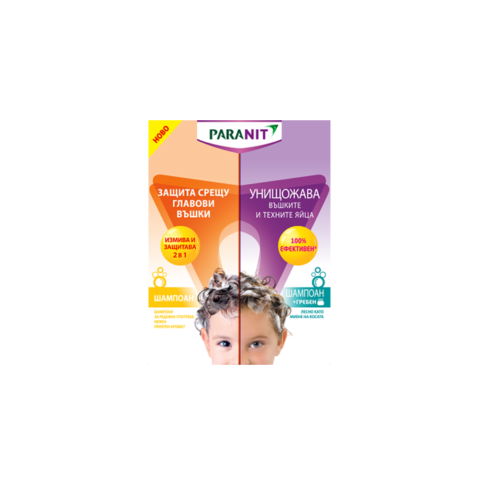 Paranit Shampoo против въшки и гниди представлява специално създаден шампоан, който притежава двойно действие - задушава въшките, като ги дехидратира и спира напълно жизнения им цикъл, благодарение на което гнидите (яйцата на въшките) са напълно елиминирани. Паранит шампоан е подходящ за редовна употреба от цялото семейство - за възрастни и деца над 2 години. Шампоанът е нежен към скалпа, с приятен аромат и употребата му е препоръчителна при наличие на епидемия от въшки (например в училище или в детска градина). Паранит шампоан е клинично тестван, не съдържа инсектициди, а Вие сте предпазени в най-голяма степен от въшките, защото те не могат да развият резистентност към някоя от съставките.