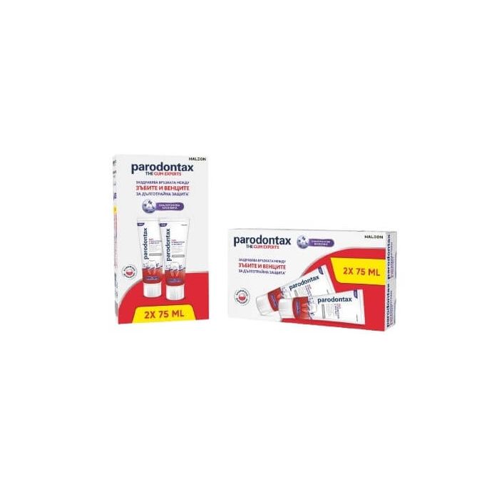 Комплектът съдържа: Parodontax Strengthen and Protect Whitening Паста за зъби за комплексна защита 75 мл 2 бр.