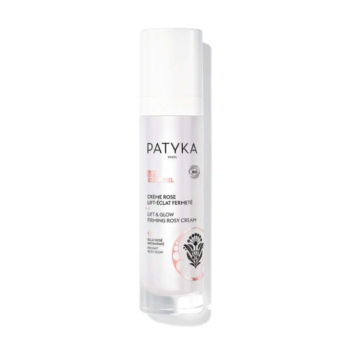 Patyka Lift Essential Lift & Glow Firming Rosy Cream е стягащ крем за румена и сияйна кожа, който съчетава ревитализиращата сила на ангелика с противостареещата сила на ретинол от растителен произход за тройна корекция (линии, плътност, блясък). Кремът предпазва кожата от двата основни фактора на стареене чрез антиоксидантно и антигликационно действие. Розовата му текстура съживява тена на всички тонове кожа, придавайки моментален блясък. Растителни и биотехнологични активни съставки: морски полизахариди за подобряване на кожната васкулатура и екстракт от органично помело за стимулиране на клетъчното обновяване. Кожата е незабавно хидратирана, а тенът е подсилен с красив розов блясък. Ден след ден, линиите и повърхността са видимо изгладени, кожата е по-стегната, а тенът по-сияен. Патика Лифт Есеншъл Стягащ лифтинг крем за лице съдържа 99% съставки от натурален произход и 44% съставки от органично земеделие.