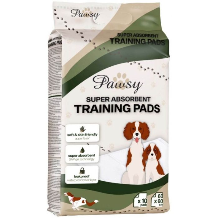 Pawsy Super Absorbant Training Pads са хигиенни подложки, който предлагат надеждно решение за поддържане на чистота и комфорт както у дома, така и при пътувания или грижа за възрастни и болни животни. Пауси Хигиенни подложки са отличен избор при създаване на хигиенни навици, продължително отсъствие от дома, престой в хотел или при нужда от допълнителна защита при инконтиненция. Благодарение на уникалната 5-слойна технология, подложките задържат големи количества течност, без да протичат. Горният слой остава сух, като осигурява комфорт на вашия любимец и предпазва лапите му от влага. Ромбовидната структура концентрира течността, а вградената технология със суперабсорбиращ полимер (SAP) улавя течността и я превръща в гел, като по този начин я задържа във вътрешността на постелката. Долният слой е напълно непромокаем и предпазва подовете и килимите от замърсяване. Постелките разполагат и със специален слой за неутрализиране на миризми, който поддържа пространството чисто и свежо. С компактна опаковка от 10 броя и универсален размер 60 x 60 cm, постелките са лесни за съхранение и пренасяне, което ги прави идеални за ежедневна употреба или за пътуване.