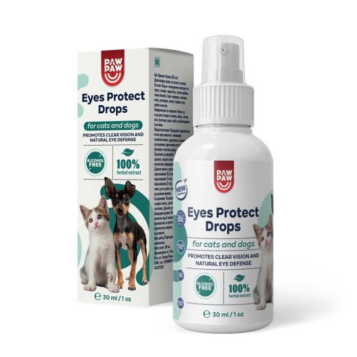 PAW2PAW Eyes Protect е нежна натурална формула, създадена да поддържа зрението и комфорта на очите при кучета и котки. Действа ефективно, намалява раздразнението и зачервяването, успокоява чувствителната очна зона и подпомага естествената защита на очите. Комбинацията от внимателно подбрани билки и натурални съставки подкрепя микроциркулацията, подобрява подхранването на очните тъкани и стимулира естествената им регенерация. ПауТуПау Айс Протект При възпаления и сълзене на очите за кучета и котки са лесни за прием, добавят се в храна и вода, или се дават със спринцовка.
