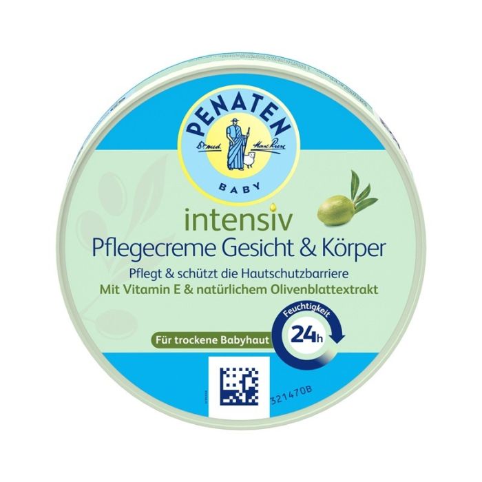 PENATEN Baby Intensive Caring Cream е подхранващ крем, създаден специално за сухата бебешка кожа. Обогатен с витамин Е и екстракт от маслинови листа, той осигурява интензивна грижа и подпомага защитата на кожата. Формулата попива бързо, без да оставя мазен филм, и оставя кожата мека, гладка и добре хидратирана. Осигурява дълготраен хидратиращ ефект до 24 часа. Подходящ за ежедневна употреба, ПЕНАТЕН БЕЙБИ Интензивен подхранващ крем за лице и тяло подпомага поддържането на естествения баланс на деликатната бебешка кожа. Не съдържа парабени и оцветители и е с дерматологично доказана кожна поносимост. Опаковката е рециклируема (с изключение на уплътнението).