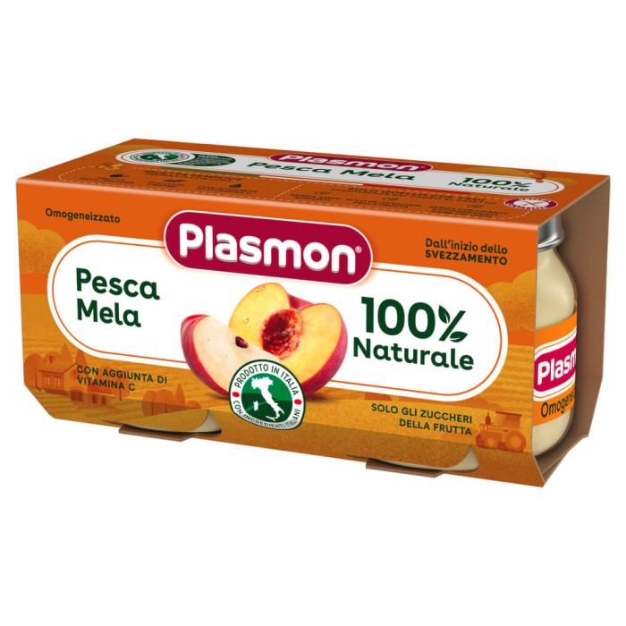 Plasmon Pesca Mela 100% Плодово пюре праскова с ябълка за деца 6М+ е 100% натурален продукт с витамин С, без добавено нишесте, произведен в Италия. Ръчно избрани плодове в точния момент на узряване. Гарантирана проследяемост на суровините и контрол на всички фази на производство по системата за безопасност и качество Oasi nella Crescita. Плазмон Песка Мела 100% Плодово пюре праскова с ябълка за деца 6М+ е богато на витамин C, благоприятстващ имунитета. Без добавена захар и без глутен. За деца от 6-ия месец освен ако педиатърът не препоръча друго.