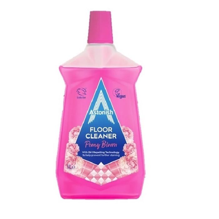 Astonish Floor Cleaner Peony Bloom е почистваща формула за под, която е с вградена технология за отблъскване на мръсотията и оставя повърхностите чисти, като предотвратява оцветяване от петна. Астониш Препарат за почистване на под, божур е със свеж аромат на цветя.