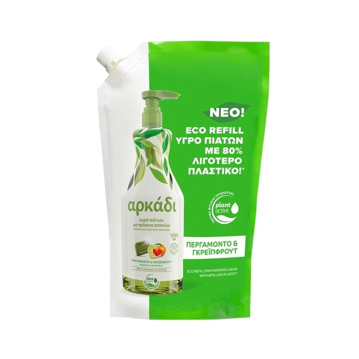 Arkadi Plant Active Bergamot е формула със зелен сапун, бергамот и грейпфрут, коята съчетава силата на природата с модерна Plant Active формула с активни ензими от естествен произход. Той образува богата пяна, която ефективно премахва мазнини и остатъци от храна, като същевременно е нежен към ръцете. Препарат за миене на съдове Аркади Актив бергамот се отмива лесно и не оставя следи. Предлага се в практична помпена опаковка за многократна употреба, изработена от 100% рециклируема рециклирана пластмаса.