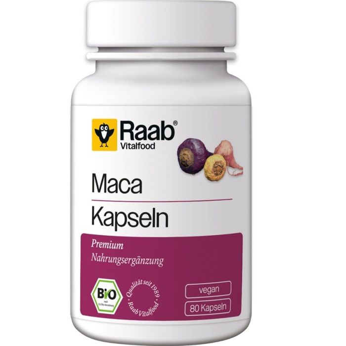Био Мака Raab Vitalfood е хранителна добавка, съдържаща мака: суперхрана, която допринася за поддържане на нивата на енергия в ежедневието. В източната култура намира приложение в подкрепа на плодовитостта. Мака (Lepidium meyenii) произхожда от Южна Америка и се използва под формата на екстракт или смлян на прах корен. Био Мака Рааб Виталфууд е богата на протеини и въглехидрати и спомага за издръжливостта и адаптацията на организма към натоварване.