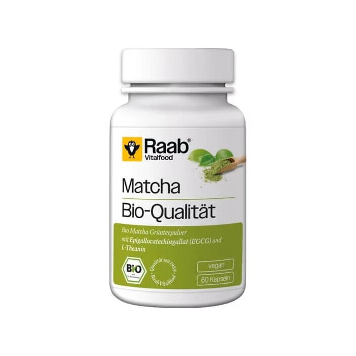Био зелен чай мача Raab Vitalfood съдържа висококачествена матча на прах. Матча е известна със своите антиоксидантни свойства, съдържа високи нива на катехин EGCG (епигалокатехин галат). Тези натурални полифеноли са силни антибактериални и антивирусни агенти, укрепват стените на капилярите и спомагат за освобождаването на тялото от токсични съединения. Матча стимулира производството на хормона норадреналин, който засилва метаболизма и изгарянето на мазнини. Био зелен чай мача Рааб Виталфууд съдържа фино смлени внимателно подбрани чаени листа.