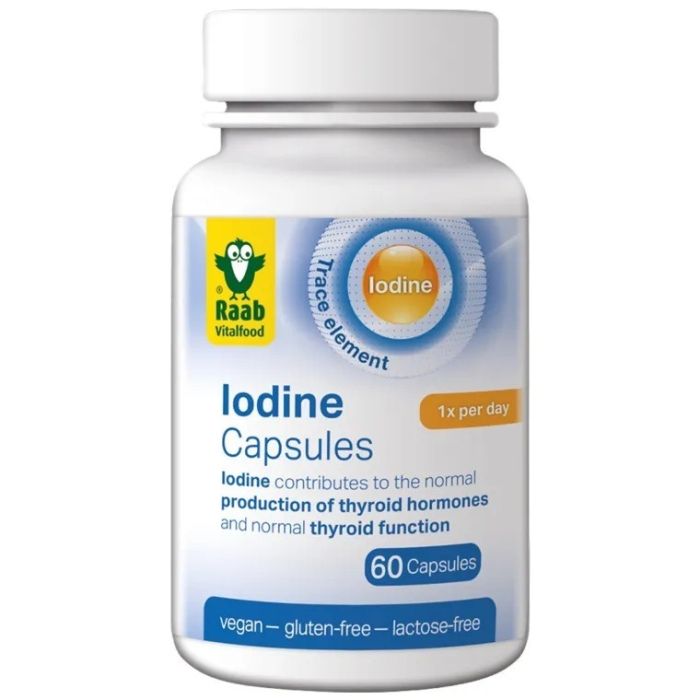 Йод Raab Vitalfood висококачествена хранителна добавка с изцяло веган състав, осигуряваща лесно и прецизно дозиране. Йодът допринася за нормалната функция на щитовидната жлеза и за синтеза на щитовидни хормони, като същевременно подпомага работата на нервната система и когнитивната функция. Формулата на Йод Рааб Виталфууд съдейства и за нормалното умствено развитие.