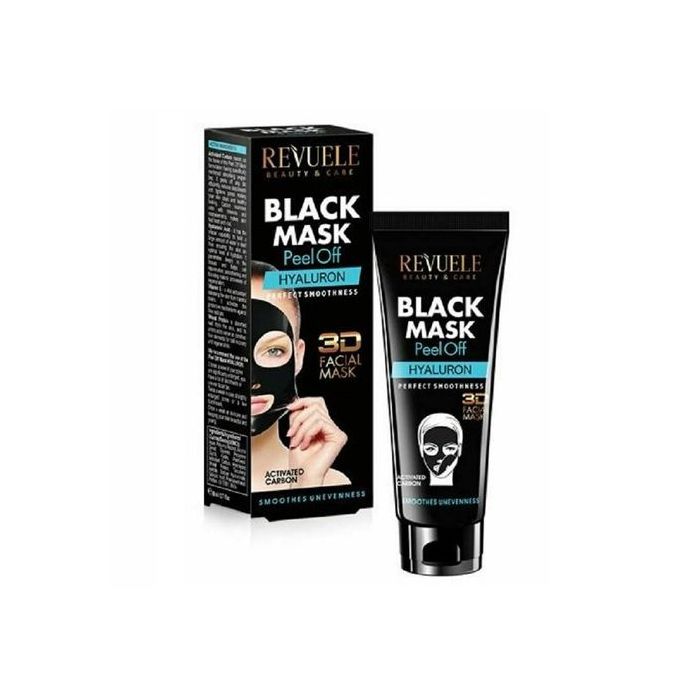 Revuele Black 3D Mask Hyaluron Face Mask е подходяща за дълбоко почистване на кожата и премахване на замърсяванията. Формулата ѝ с активен въглен абсорбира токсините и излишния себум, като оставя порите чисти и свити. Хиалуроновата киселина осигурява необходимата хидратация, и спомага за възстановяване на еластичността на кожата. Редовната употреба осигурява свеж, сияен и здрав вид на лицето. Ревуеле Черна 3D Пилинг маска за лице с хиалуронова киселина допринася за свежа и видимо изгладена текстура на кожата. Нанася се лесно и е лесна за употреба.