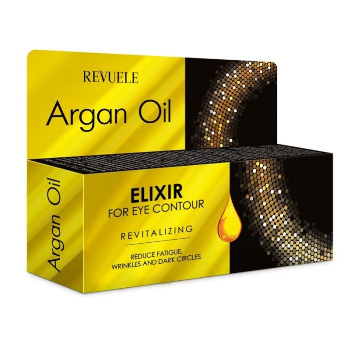 Revuele Revitalizing Eye Contour Elixir специално разработен за кожа около очите, която е уморена, подпухнала, склонна към тъмни кръгове, бръчки и е загубила еластичност. Формулата е обогатена с масло от арган, което подхранва, омекотява и поддържа хидролипидната бариера на кожата. Кремът помага да се възвърне мекотата, освежава и прави кожата по-еластична и стегната. Редовната употреба на Ревуеле Еликсир за околоочен контур с Арган може да намали видимостта на фини линии и да възвърне младежкия блясък. Леката текстура позволява бързо попиване, без да оставя мазен филм, което го прави удобен за ежедневна грижа. Подходящ е за всички типове кожа и особено за кожа, склонна към сухота и умора.