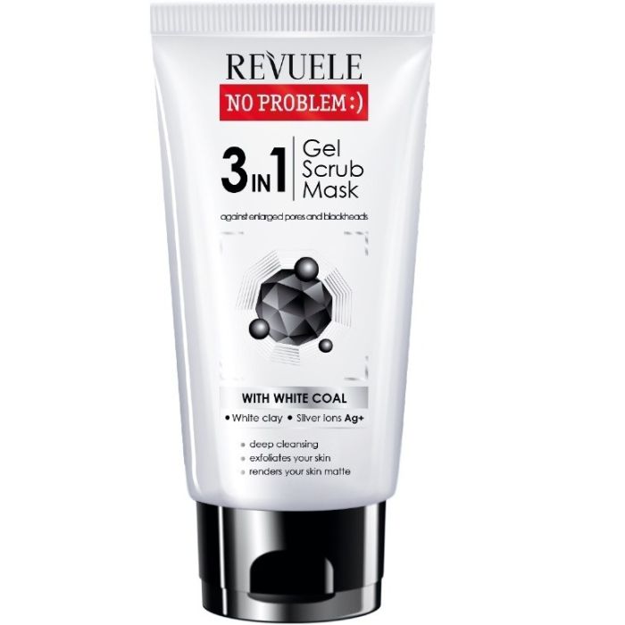 Revuele Gel - scrub and mask 3in1 with activated charcoal комбинира действието на гел за почистване, скраб и маска, за да осигури пълна грижа за кожата на лицето. Почиства кожата, регулира производството на себум и премахва петна и омазняване. Активните въгленови микрочастици нежно ексфолирт мъртвите клетки, отпушват порите и премахват черните точки, като оставят кожата гладка и свежа. Бялата глина, известна със своите абсорбиращи и успокояващи свойства, придава матов завършек и изравнява тена. Ревуеле Гел скраб маска за лице 3 в 1 е подходящ за кожа с несъвършенства и склонна към омазняване кожа.