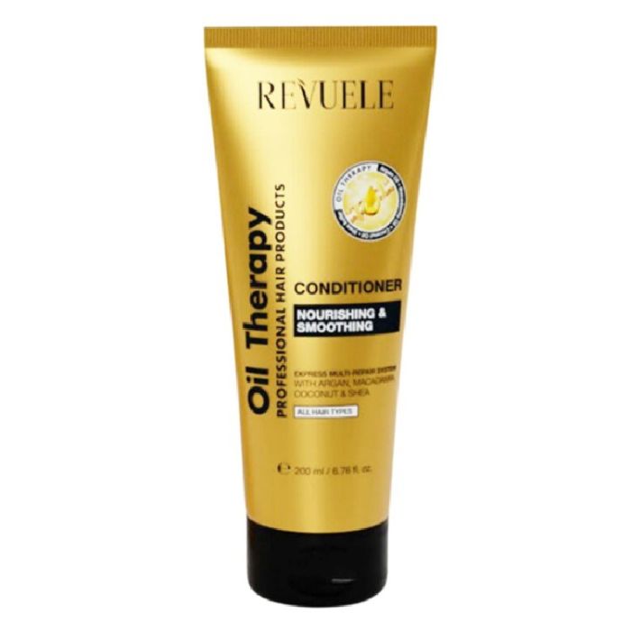 Revuele Oil Therapy Conditioner е специално създаден, за да осигури интензивна грижа и възстановяване на косата. Благодарение на богатия си комплекс от масла: арганово, от макадамия, кокос и ший, той хидратира и подхранва косъма, придава жизненост и блясък. Ревуеле Ойл Подхранващ и възстановяващ балсам за коса, изглажда косъма и улеснява разресването, като спомага нейното оформяне. Веган формула.