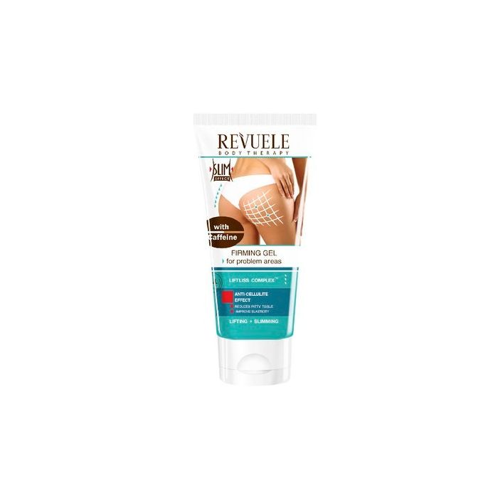 Revuele Caffeine firming gel for problem areas Slim & Detox е оформящ и стягащ гел, насочен към „проблемни зони“: корем, ханш, бедра. Разработен да възстанови тонуса, да подобри еластичността и да подпомогне загубата на излишни течности и „портокалова кожа“. При редовна употреба кожа става по-гладка, по-стегната и с по-гладка текстура, а контурите на тялото по-добре оформени. Ревуеле Стягащ гел за проблемни зони с кофеин стимулира кръвообращението и лимфния дренаж, подпомага метаболизма в кожата и може да спомогне при премахване на задържане на течности.
