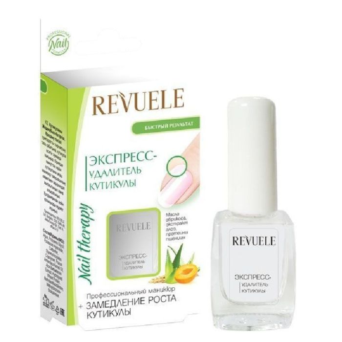 Revuele Express Cuticle Remover Nail Therapy е бързодействаща формула, предназначен да омекоти кожичките около ноктите и да улесни тяхното деликатно отстраняване, без да използвате режещи инструменти. Само за 1–2 минути след нанасяне, кожичките стават меки и податливи, което позволява лесното им отдръпване и премахване, като резулатът е чист, подреден маникюр. Ревуеле Терапия за нокти Експресно премахване на кожички едновременно подхранва кожата около ноктите и самите нокти, придавайки им здрав и поддържан вид. Подходящ е както за домашна грижа, така и за професионлано използване. След употреба ноктите остават гладки, с равен контур и готови за лак или друга декорация.