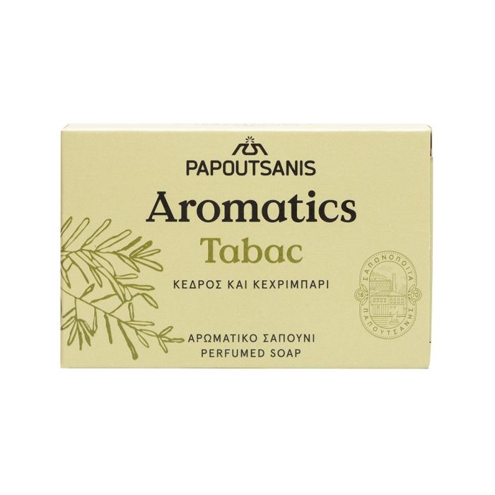 Aromatics Tabac soap е твърд тоалетен сапун с нежно измиващо действие, подходящ за мъже. Сапун ароматик Кедър и кехлибар има хидратиращ ефект и не съдържа SLS. С неутрално PH, подходящ за лице и тяло. С пикантни нотки на кедър и амбра, е мъжки избор за свежест, който се грижи за мъжката кожа.