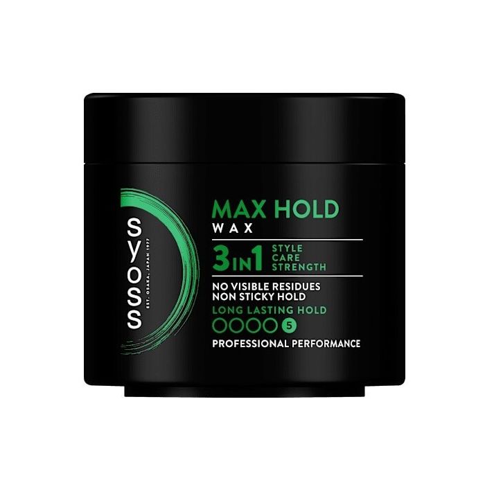 Syoss Max Hold Hair Wax е стилизираща вакса за коса, разработена за мъже и жени, които искат много силна фиксация (степен 5) и контрол върху прическата през целия ден. Формулата е 3‑в‑1: за оформяне, грижа и укрепване на косъма, като благодарение на витаминния комплекс с пантенол и ниацинамид подпомага зазадравяването на структурата на косата. Ваксата дава дълготрайна, интензивна фиксация без да оставя лепкави остатъци. Сайъс Макс Холд Вакса за коса с мега силна фиксация е без алкохол и силикони, което помага да не изсушава или утежнява косата.