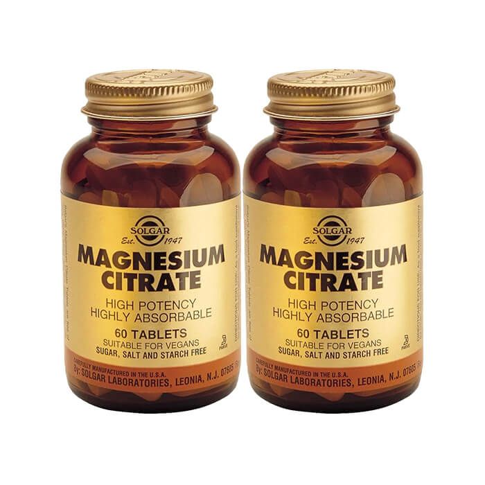 Комплектът съдържа: Solgar Magnesium Citrate Магнезиев Цитрат 200 мг х 60 таблетки 2 бр.