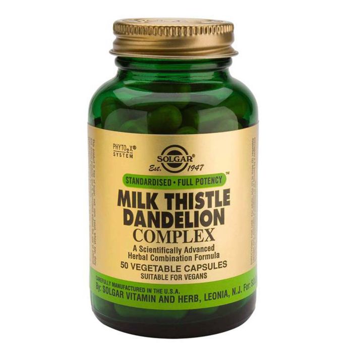 Solgar Milk Thistle Dandelion Complex е висококачествена хранителна добавка, която съдържа натурални екстракти от Глухарче и Бял трън. Приемът й съдейства за пречистването на организма и подкрепя здравето и функциите на черния дроб. Помага за освобождаването на организма от задържаните течности, има противовъзпалителен ефект и подпомага регенерацията на клетките в черния дроб. Солгар Бял трън и Глухарче екстракт стимулира отделянето на жлъчен сок и подобрява храносмилането. Има мощно антиоксидантно действие и съдейства за повишаване на общия имунитет на организма.