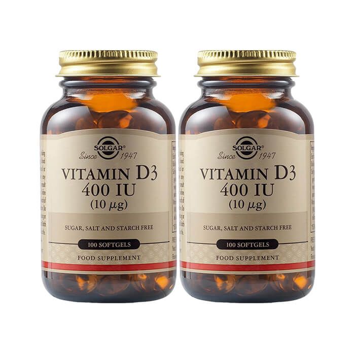 Комплектът съдържа: Solgar Vitamin D3 Витамин D3 за здрава костна система 400IU х 100 капсули 2 бр.