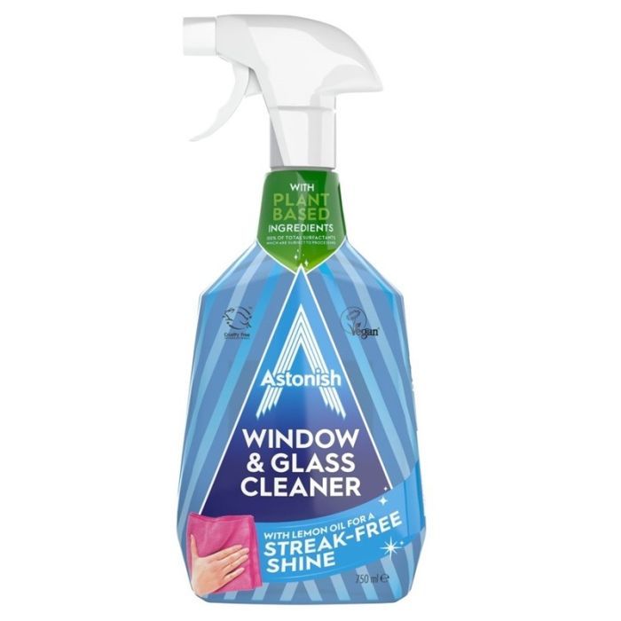 Astonish Window & Glass ucacleaner eucalyptus & Lemon е почистваща формула за стъкла, прозорци, огледала и други стъклени повърхности. Тя почиства ефективно, без да оставя петна и следи. Астониш Спрей за прозорци евкалипт и лимон е лесен за употреба и притежава свеж аромат.