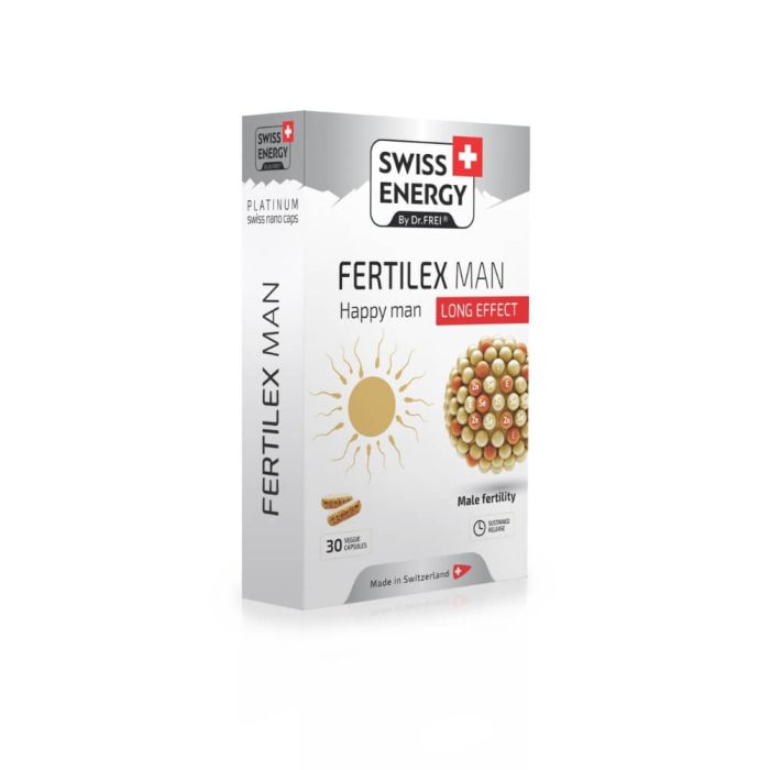 Swiss Energy Happy Man Fertilex Capsules е хранителна добавка, която благоприятно повлиява плодовитостта и репродуктивността. Суис Енърджи Хепи Мен Фертилекс мъже поддържа нормалната сперматогенеза и сексуалната функция при мъжете. Допринася за нормална концентрация на тестостерон в кръвта. Подпомага съзряването и подвижността на сперматозоидите. Увеличава броя на сперматозоидите, обема и плодовитостта. Подобрява функцията на простатата.