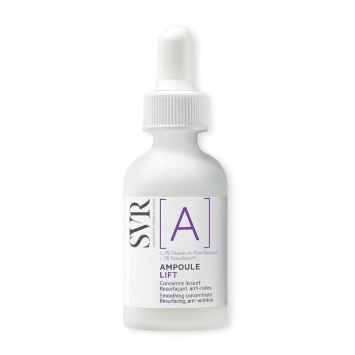 SVR [A] AMPOULE LIFT е лифтинг концентрат против бръчки, подходящ за неравномерна кожа с несъвършенства, разширени пори и бръчки. Този серум, с висока концентрация на витамин А ретекстурира кожната тъкан и изглажда кожата. Ден след ден текстурата на кожата е все по-фина, качеството на кожата се подобрява и тя изглежда по-млада. Витамин А (ретинол) е водеща анти-ейдж активна съставка, която ретекстурира кожата и коригира дълбоките бръчки. СВР [A] Лифтинг концентрат против бръчки нежно изглажда кожната повърхност и регенерира епидермиса. Млечната галенична формула мигновено се слива с кожата и нежно разтваря активните си съставки за видим резултат и кожа, която е и гладка, и напълно комфортна. Формулата е подходяща за чувствителна кожа.Дерматологично тестван продукт.
