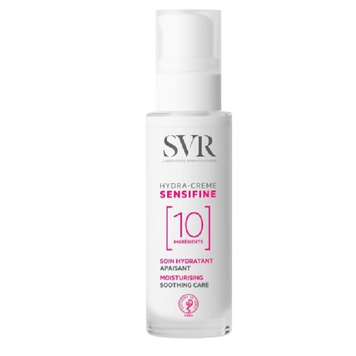 SVR Sensifine Hydra Creme e хидратиращ крем за нормална суха и чувствителна кожа. Специалната формула съдържа 10 съставки, от които 96% са с изцяло натурален произход. Всички те са внимателно подбрани, за да успокояват незабавно и интензивно да хидратират чувствителната кожа, която не е твърде мазна или твърде суха. СВР Сенсифайн Хидратиращ крем за нормална суха и чувствителна кожа има лека текстура, която попива бързо и осигурява 24-часов комфорт и хидратация, без мазни или залепващи остатъци. Успокоява свръхчувствителната кожа, като същевременно полага грижи за планетата, благодарение на своята опаковка с минимално съдържание на пластмаса. Без парабени. Дерматологично тестван продукт. Некомедогенен.