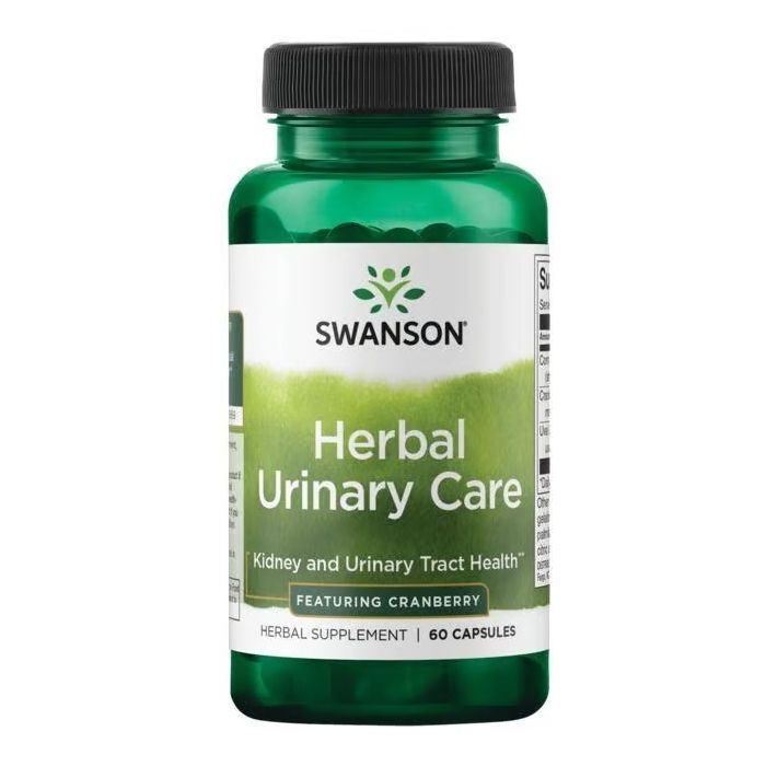 Swanson Herbal Urinary Care Featuring Cranberry е хранителна добавка, разработена да подкрепи нормалната функция на уринарния тракт. Суонсън Билкова грижа за пикочните пътища с червена боровинка е формулирана с екстракт от червена боровинка, царевична коприна и мечо грозде и спомага за баланса на микробиома на пикочните пътища.