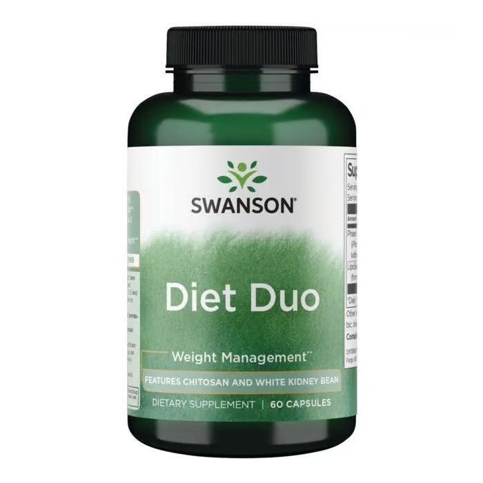 Swanson Diet Duo – с хитозан и екстракт от бял боб е хранителна добавка, разработена да подпомага поддържането на здравословно телесно тегло. Формулата е насочена към ограничаване на въздействието на хранителните въглехидрати и мазнини, като действа на два етапа. В първия етап хитозанът се свързва с мазнините и възпрепятства тяхното усвояване. Във втория етап екстрактът от бял боб подпомага процеса, като ограничава разграждането и абсорбцията на въглехидрати. Продуктът насърчава здравословния метаболизъм. Суонсън Диетично дуо с хитозан и бял боб дава най-добри резултати, когато се комбинира с балансиран хранителен режим и физическа активност.