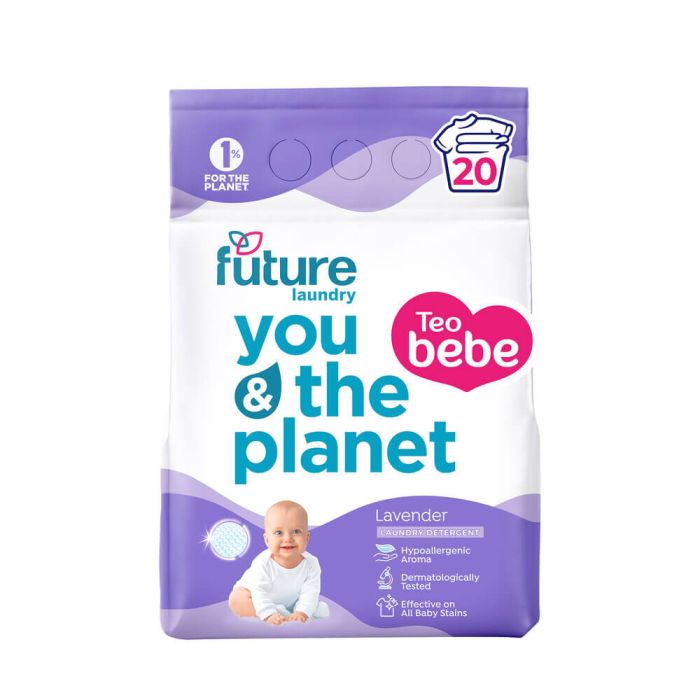 Tео Bebe Future Lavender Baby Laundry Powder е нежен към кожата и силен срещу петната. С формула специално създадена за деликатната бебешка кожа. Тео Бебе Прах за пране с екстракт от лавандула е подходящ за употреба от първия ден от живота на бебето. Дерматологично тестван. С хипоалергенен аромат. Съдържа изпиращи съставки с естествен произход за още по-нежна грижа към кожата. Справя се отлично дори с упоритите бебешки петна като тези от моркови, спанак, домати и други.