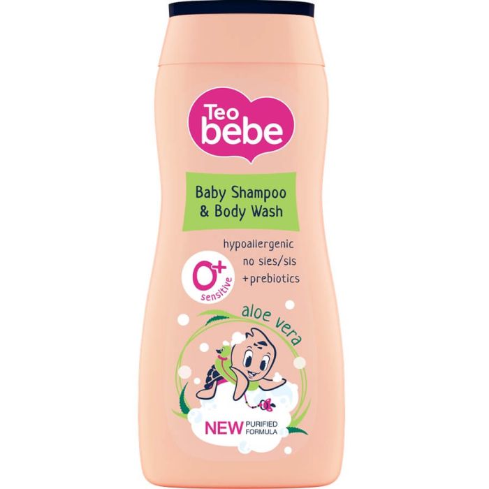 Тeo Bebe Шампоан и Душ гел 2в1 с екстракт от алое вера осигурява нежно измиване без сълзи за деликатната бебешка кожа и коса. Продуктът хидратира, успокоява и овлажнява благодарение на своята специална формула с хипоалергенно действие. Шампоанът не съдържа парабени. Тео бебе Шампоан и Душ гел 2в1 с екстракт от алое вера омекотява кожата и превръща къпането на бебето в приятно преживяване. Продуктът е с неутрално pH и е изключително подходящ за чувствителната кожа на малки и големи. Не съдържа сулфати, а добавеният пребиотик се грижи за баланса на микрофлората на кожата.