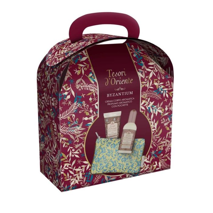 Комплектът съдържа: Tesori d'Oriente Byzantium Тоалетна вода за жени 100 мл 1 бр + Tesori d'Oriente Byzantium Крем за тяло с аромат на черна роза 75 мл 1 бр + Подарък Комплект