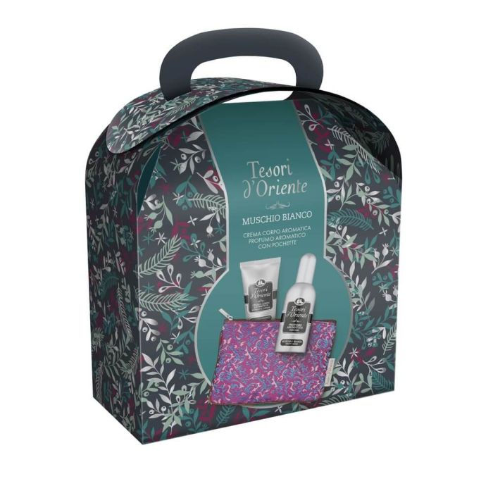 Комплектът съдържа: Tesori d'Oriente Muschio Bianco Тоалетна вода за жени 100 мл + Tesori d'Oriente Muschio Bianco Крем за тяло с бял мускус 75 мл + Подарък