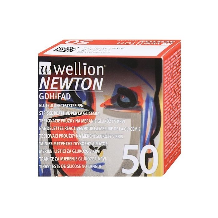 Тест ленти Wellion Newton GDH-FAD осигуряват надеждно и точно измерване на нивата на кръвната захар само с малка капка кръв. Те са предназначени за използване с глюкомера Wellion Newton и са подходящи както за домашна, така и за професионална употреба. Лентите могат да се използват с прясна капилярна и венозна цяла кръв, както и при измервания при новородени. Уелън Неутън е лесен и практичен за употреба, което го прави удобен за ежедневен контрол на кръвната глюкоза. Опаковката съдържа 50 тест ленти, разпределени в две кутийки.