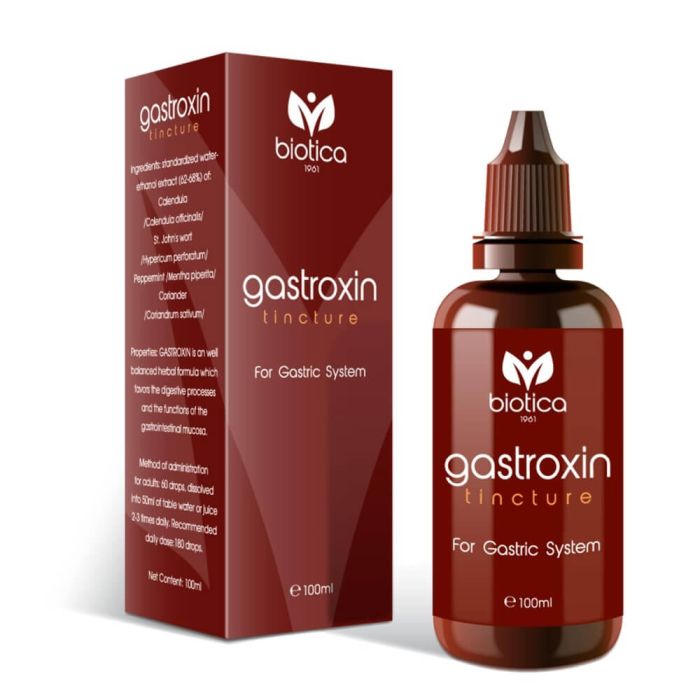 Gastroxin е специално разработена комбинация от билкови екстракти, която подпомага здравето на храносмилателната система. Тинктура Гастроксин благоприятства функциите на стомашно-чревния тракт, спомага за естественото поддържане на стомашната киселинност и защитава стомашната лигавица. Включените екстракти оказват облекчаващо действие върху стомаха, тънкото и дебелото черво, като допринасят за цялостния комфорт на храносмилателната система.
