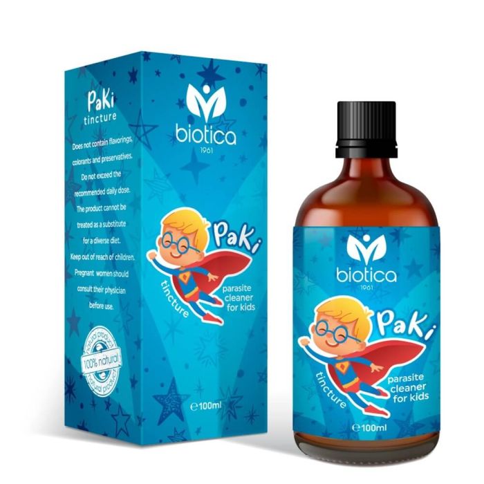 PaKi е хранителна добавка на билкова основа предназначена за естественото пречистване на организма при деца. Тинктура ПаКи подобрява чревната микрофлора и повишава защитните сили на имунната система. Действа благоприятно върху стомашно-чревния тракт и обмяната на веществата при деца.
