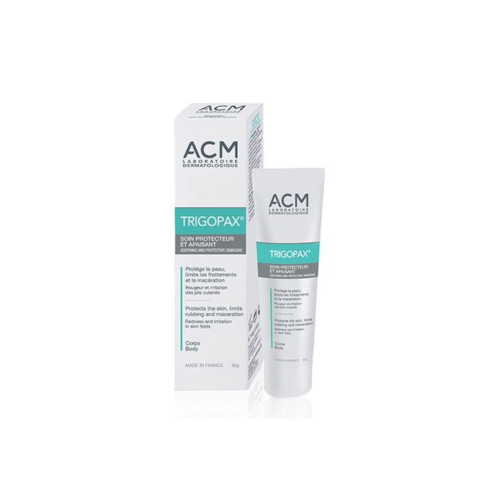 Trigopax Shothing and Protective Skincare ACM е висококачествен защитен и успокояващ крем против подсичане и зачервявания в гънките, подходящ при затлъстяване, прекомерна спортна активност, носене на стегнати дрехи и бельо, който бързо успокоява и помага зарастването на раздразнената кожа. Тригопакс защитен крем против подсичане и зачервявания в гънките АЦМ притежава иновативна формула, съставена на лечебното и регенериращо действие на естествени растителни фитостероли. Комбинацията от фитостероли и естествени прахообразни частички в Тригопакс, абсорбират влагата, без да причиняват дехидратация на кожата. А екстрактът от репей и цинков оксид - помага да се избегне дразненето и ускорява зарастването на възникнали разранявания по кожата. След употребата на крема кожните раздразнения са облекчени, а зачервяването премахнато. Продукта не съдържа консерванти, аромати и оцветители.