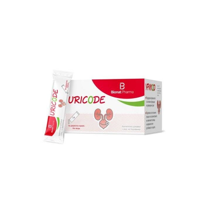 Uricode е високоефективна формула, която се грижи за уринарния тракт - пикочния канал, пикочния мехур, уретерите и бъбреците. Подпомага естествената защита срещу бактериални причинители на уринарни инфекции като Escherichia coli и други патогени. Урикод е подходящ за самостоятелно приложение или при комбинирана терапия по време или след антибиотично лечение. Комбинацията от активни съставки (D-маноза, патентования екстракт Qcran™ от американска червена боровинка и витамин D3) работи синергично за ефективното изчистване на бактериите, укрепване на лигавицата на пикочния мехур и създаване на неблагоприятна среда за повторна инфекция. Иновативна технология за микрокапсулиране на активните съставки гарантира забавено освобождаване, висока бионаличност и непроменена стабилност до пълното им усвояване от организма. По този начин се постига достатъчна концентрация и оптимален ефект на препарата само с една дневна доза. Подходящ за възрастни, диабетици, бременни и кърмещи жени.