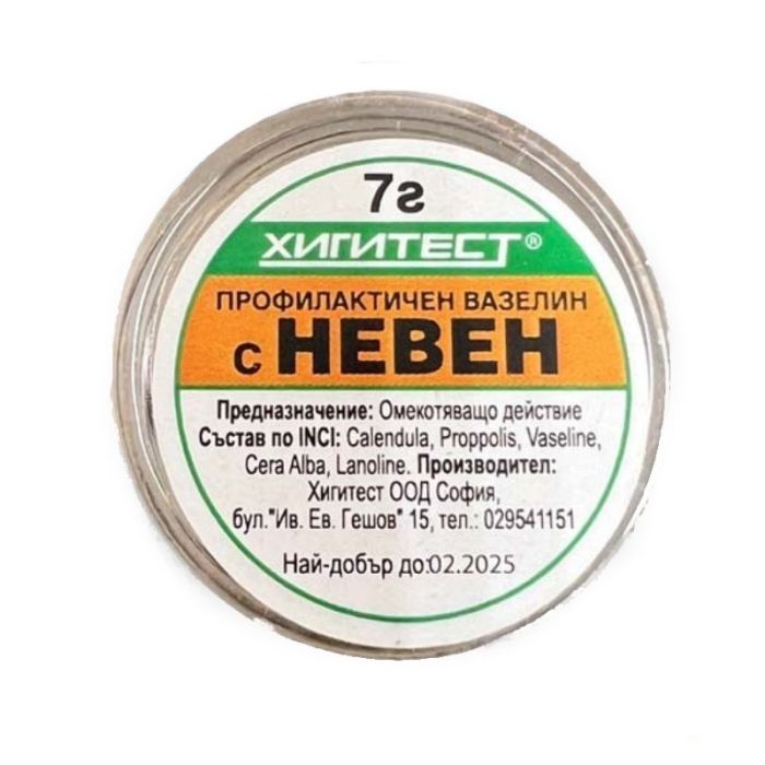 Вазелин с невен е натурален продукт с прополис и екстракт от невен. Изключително подходящ за омекотяване на напукана кожа. Може да се прилага успешно и върху суха кожа, тъй като има омекотяващ и регенериращ ефект. Подходящ е да се използва за облекчаване на леки раздразнения. Вазелин с невен попива добре и не оставя мазни следи.