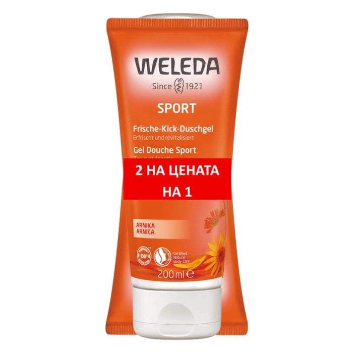 Weleda Sport Shower Gel with Arnika e oсвежаващ душ-гел, който почиства нежно кожата, като същевременно с това я тонизира. Подходящ за всеки тип кожа. Веледа Спорт Енергизиращ душ-гел с арника е идеален за активни хора, той е изключително подходящ за сутрешна баня, за да започнете с добро настроение и прилив на енергия. Специалната формула съдържа арника монтана, известна като „планинско злато“ заради изключителната си ефикасност при мускулни и ставни травми, за облекчаване на болката и успокояване на двигателната система. Тя е незаменим помощник и за по-бързо разнасяне на отоци и синини. Уникалният аромат на душ-гела се допълва от стимулиращите нотки на розмарин и релаксиращите свойства на лавандула. Подходящ, както и за мъже, така и за жени. Без парабени. Дерматологично тестван продукт.