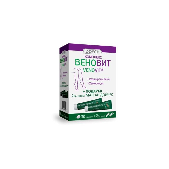 Комплектът съдържа: Веновит 30 таблетки + подарък - Крем Матсан Дойч 2 бр.
