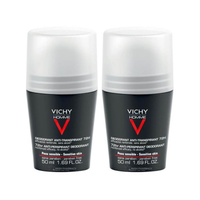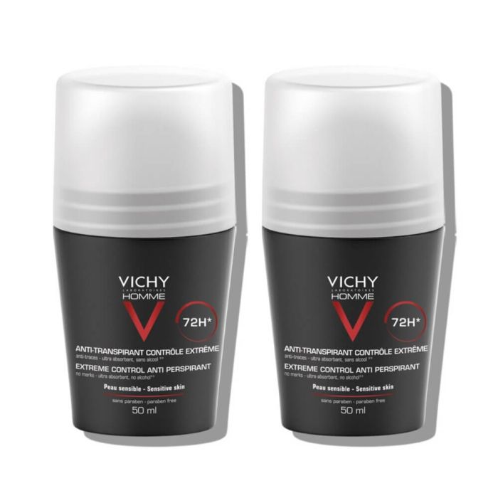 Комплектът съдържа: Vichy Homme Дезодорант рол-он с 72 часа ефект против интензивно изпотяване за мъже 50 мл 2 бр.