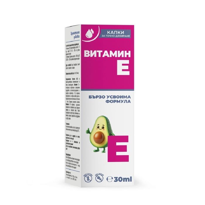 Omega Vita Витамин Е на капки представлява хранителна добавка с бързо усвоима формула на витамин Е – важен антиоксидант. Омега Вита Витамин Е на капки е необходим за структурна и функционална поддръжка на скелетната, сърдечната и гладката мускулатура. Подпомага образуването на червени кръвни клетки и поддържа запасите на витамин А и К, желязо и селен.