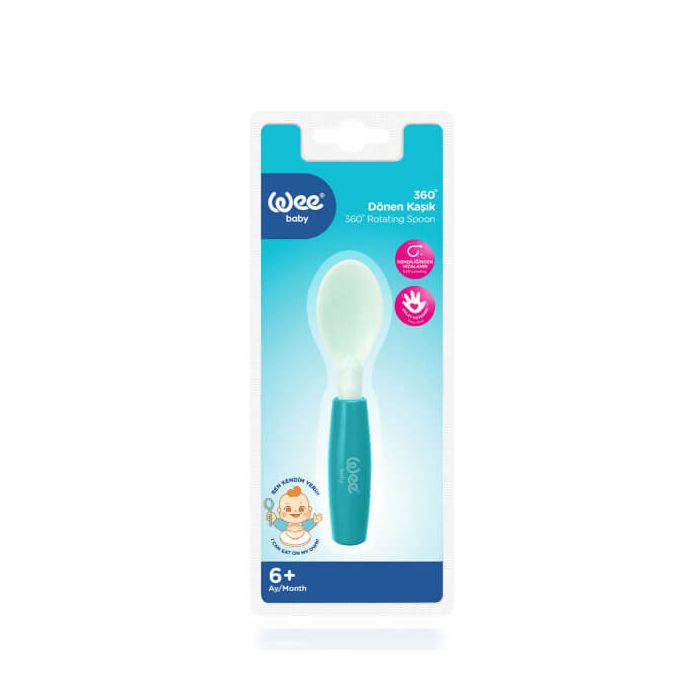 WEE BABY Rotating Spoon e специално проектирана за деца, които се учат да се хранят сами. Подходяща за бебета на 6 месеца и повече. Лъжичката се върти около оста си, оставайки подравнена с дръжката, дори когато не се държи правилно. Удобен захват и самонастройваща се лъжичка. Без BPA, произведен по стандартите на FDA.